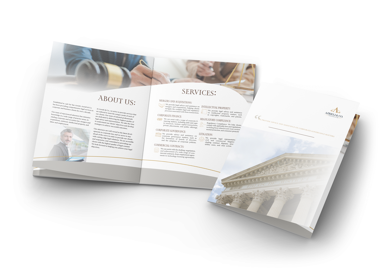 This brochure is about Azrieli & Co, a lawfirm that provides advice and assistance.
